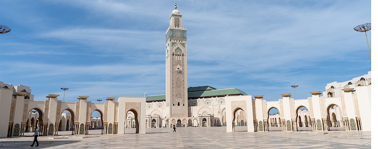 Casablanca, Morocco's modern metropolis, entices with a blend of the traditional and the contemporary. The Hassan II Mosque is the second largest mosque in Africa and well worth a visit. Eclectic architecture and vibrant city markets offer a rich cultural tapestry against the backdrop of the Atlantic Ocean.