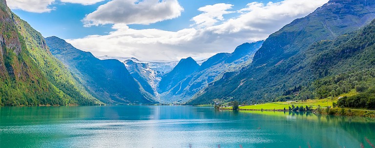 Norway's landscapes come alive with blooming flowers and verdant greenery in springtime. Sail through serene waters flanked by towering cliffs and visit charming fjord villages that dot the landscape.